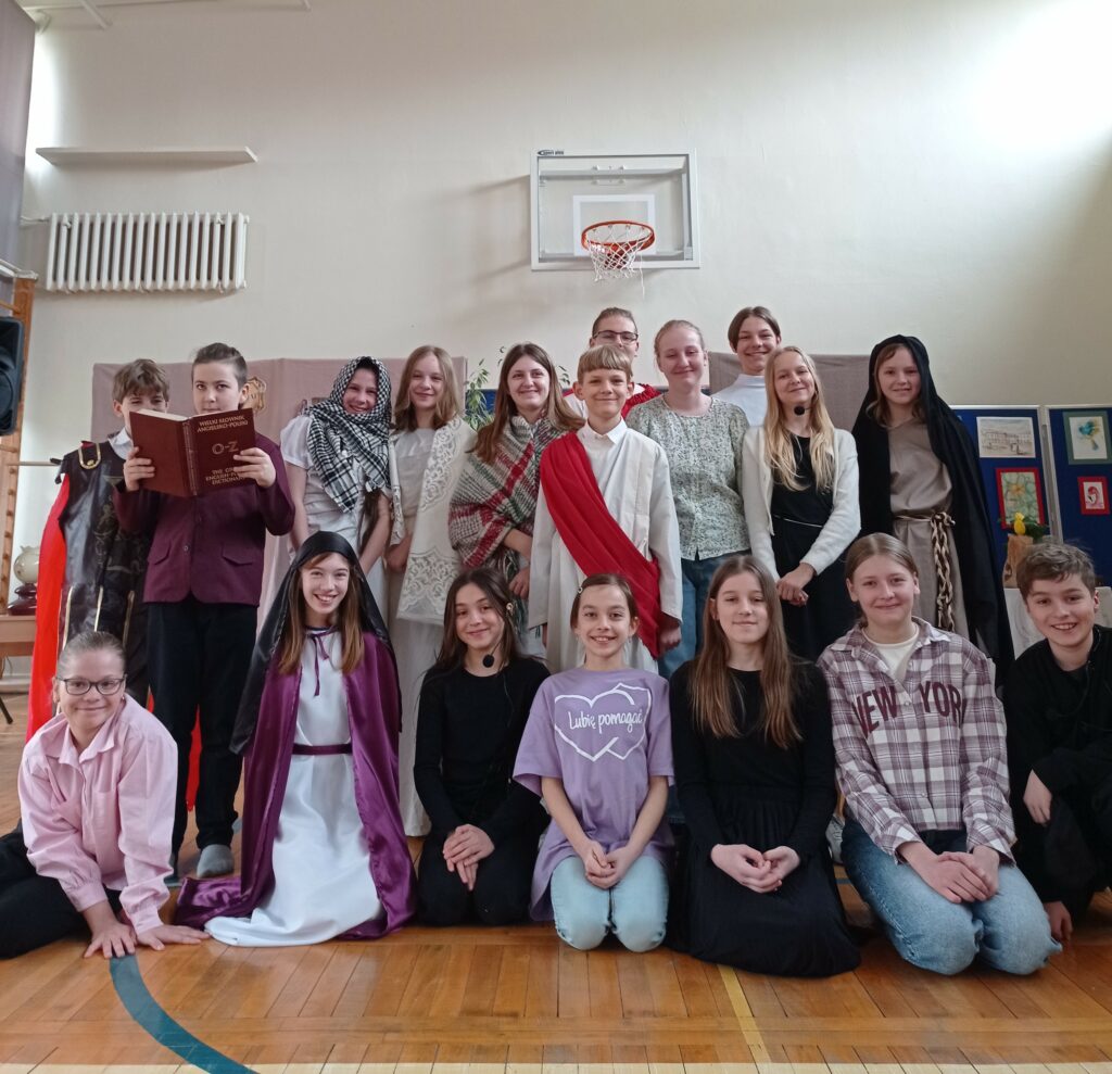 Już tradycyjnie w naszej szkole dzień przed świąteczną, wielkanocną przerwą jest inny od tych codziennych. Nie tylko za sprawą klasowego spotkania czy też strojów galowych, ale też dlatego, że możemy uczestniczyć w Misterium wystawionym przez szkolne koło teatralne, a przygotowane pod czujnym okiem s. Wiesławy i s. Gracjany. Scenariusz z muzyką został przygotowany przez aktora krakowskiego Teatru Bagatela – Marcina Kobierskiego, który od zawsze (tak chyba można powiedzieć) współpracuje z młodzieżą. Reżyser kolejny raz podejmuje temat Męki Pańskiej w zupełnie niekonwencjonalny sposób, ale piękny i z ważnym przekazem. Dobry Łotr – taki jest też tytuł spektaklu – jest nam znany z kart Pisma Świętego jest symbolem Bożego Miłosierdzia; pokazuje, że nawet w ostatniej chwili życia można jeszcze powrócić do Boga. Znamy go zaledwie z jednego zdania, które wypowiedział na krzyżu i którym otworzył sobie niebo. Ojcowie Kościoła pisali, że niejako „ukradł sobie zbawienie”, wykorzystując swój wewnętrzny instynkt złodziejaszka, który do końca w nim pozostał.