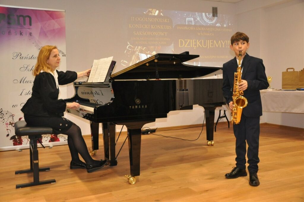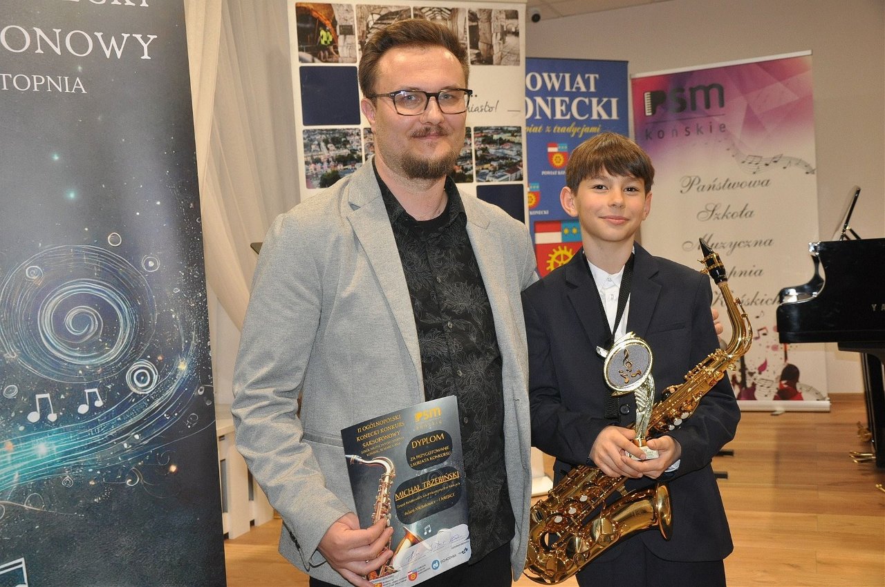Cieszymy się niezmiernie z sukcesu Adama M. z klasy 5a, który w miniony poniedziałek (30 marca) brał udział w II Ogólnopolskim Konkursie Saksofonowym w Końskich i zajął I miejsce. Do konkursu zgłosiło się 34 uczniów, między innymi z Warszawy, Opola, Bydgoszczy, Kielc, Piotrkowa Trybunalskiego, Radomska, Bełchatowa, Nysy, Pabianic, Olkusza i innych miejscowości – zatem konkurencja była bardzo duża. Adam okazał się najlepszy. Gratulujemy sukcesu i życzymy dalszych.