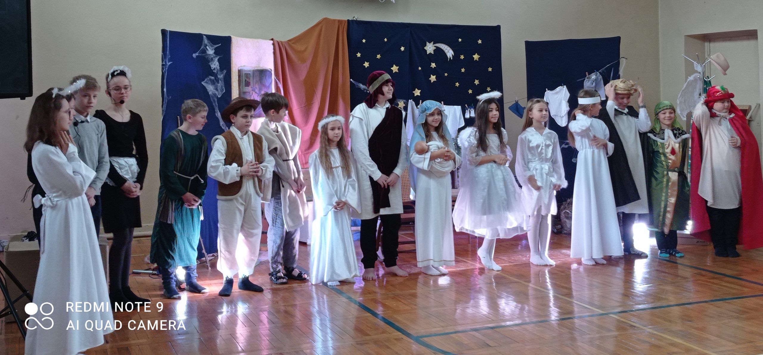 Po modlitwie wróciliśmy do szkoły, by już tutaj przeżyć na nowo Tajemnicę Wcielenia. Szkolna grupa teatralna przedstawiła Jasełka w reżyserii p. Marcina Kobierskiego – aktora krakowskiego teatru Bagatela, a pod czujnym okiem s. Wiesławy i s. Gracjany. W sposób niekonwencjonalny – bo na strychu, mogliśmy raz jeszcze doświadczyć wydarzeń, które wydarzyły się przed 2 tysiącami lat. Bo faktem jest, że niezależnie od miejsca i czasu Bóg przychodzi – Jezus się rodzi... od nas tylko zależy czy drzwi naszych serc i domów będą otwarte, czy będzie mógł do nich wejść i zamieszkać.